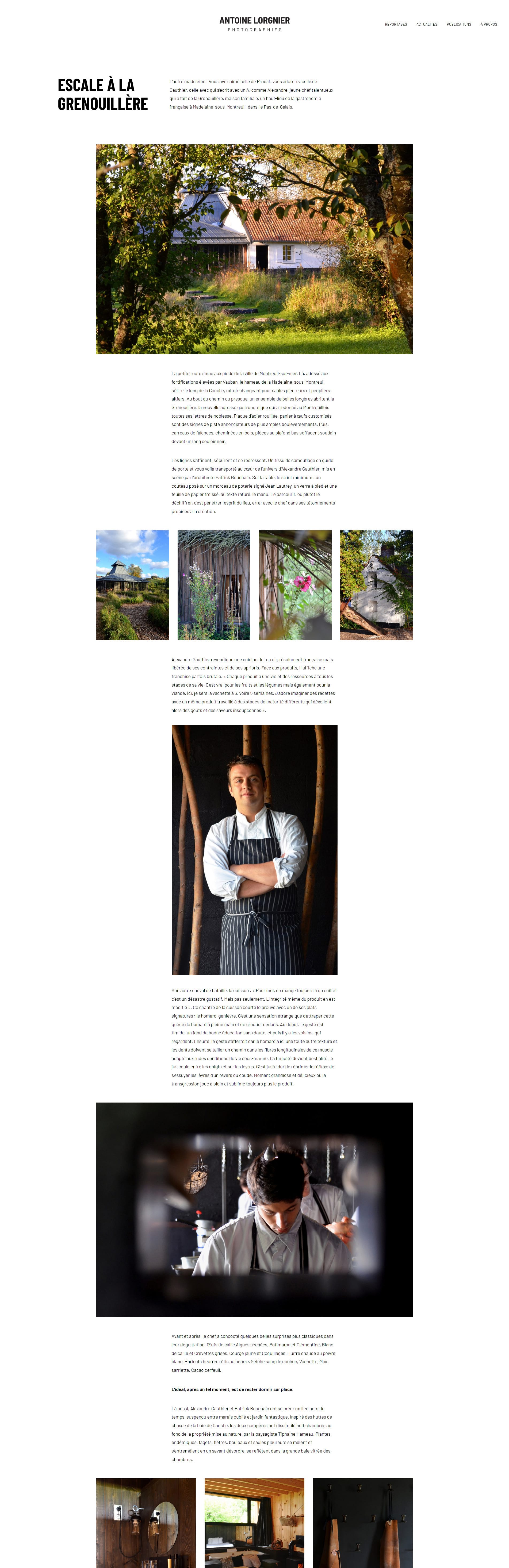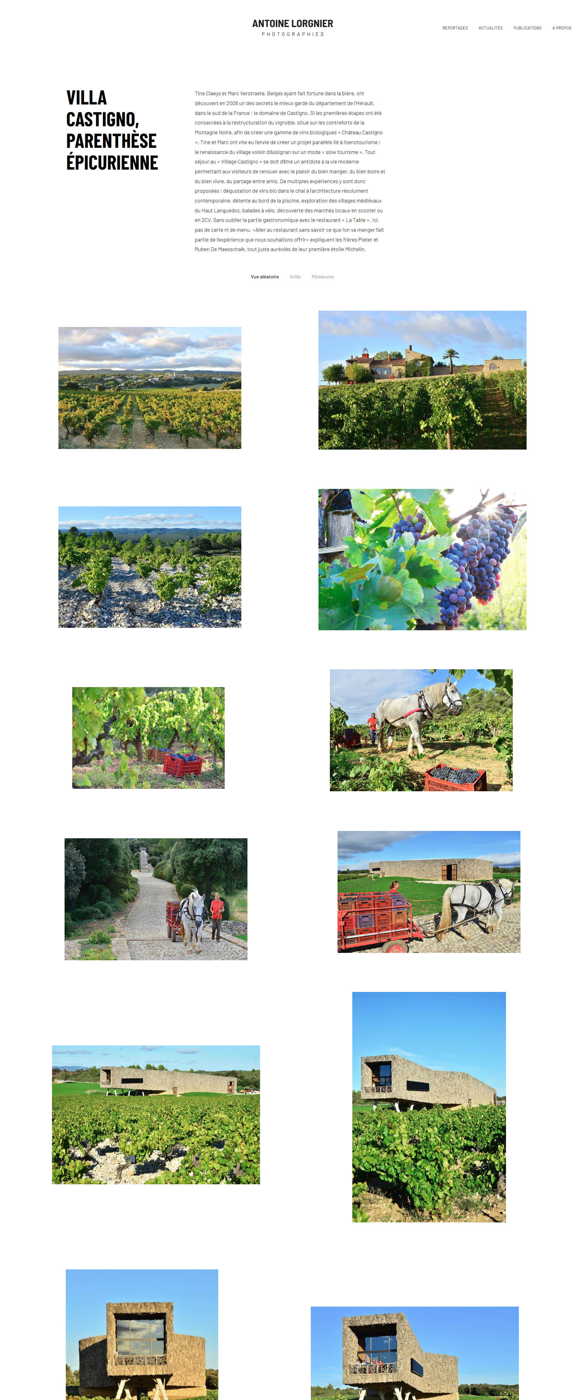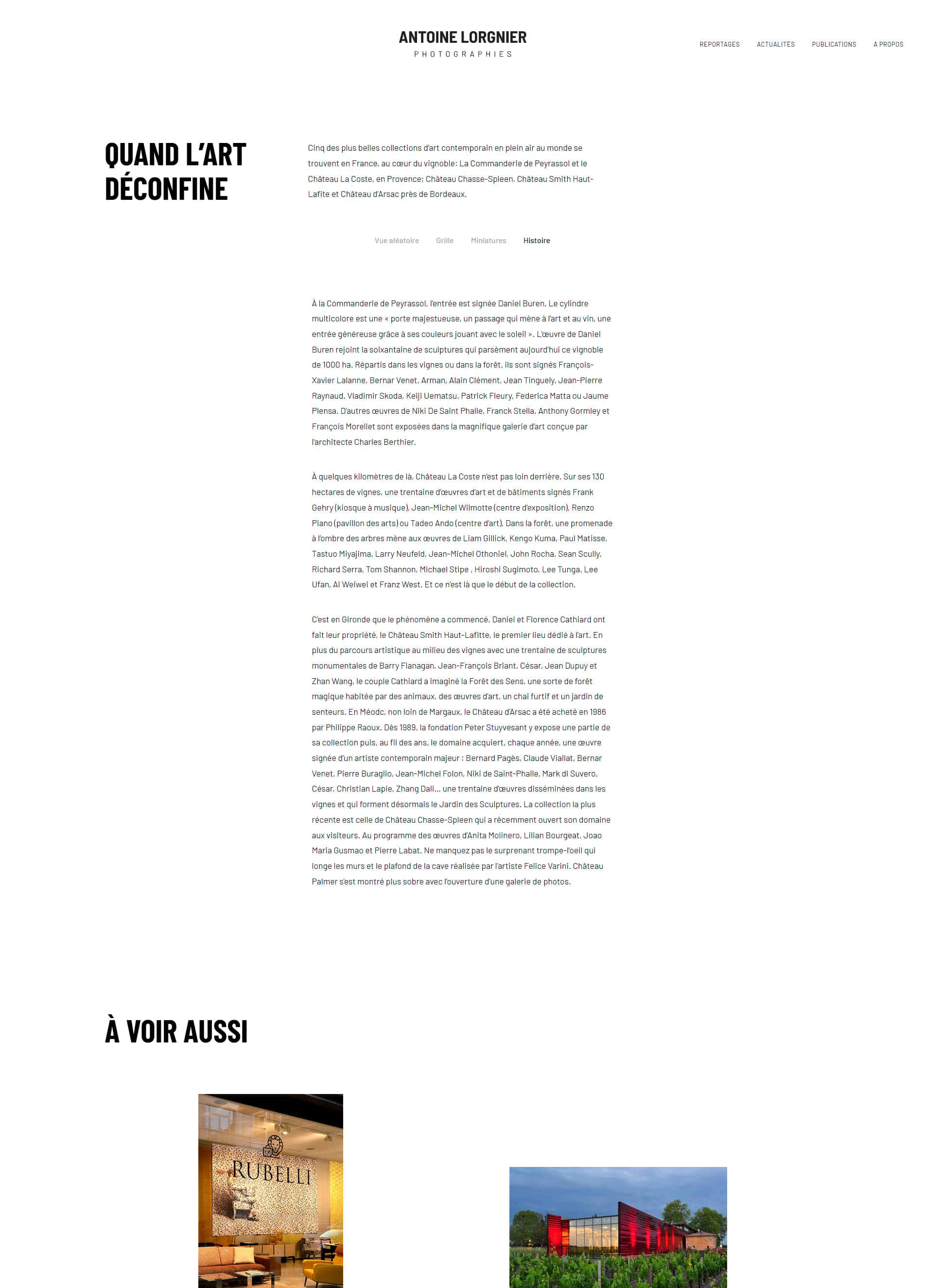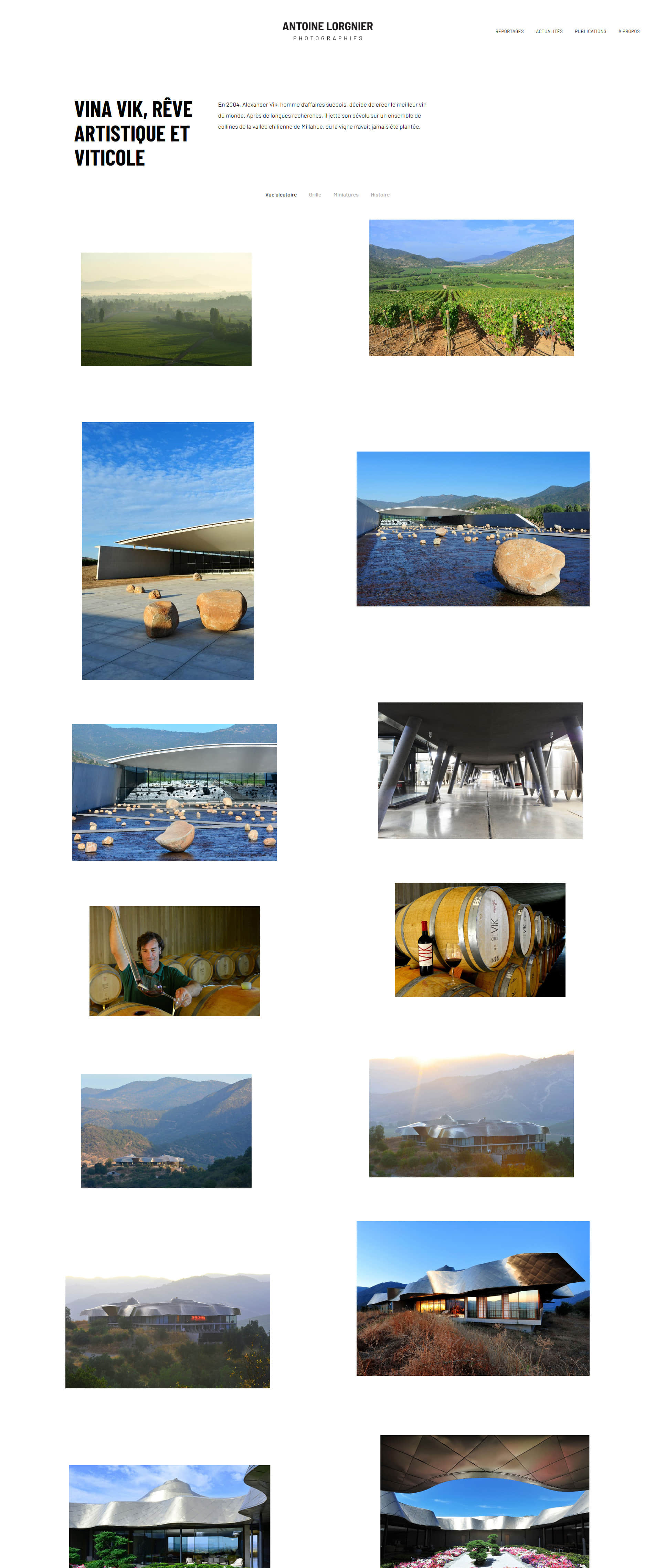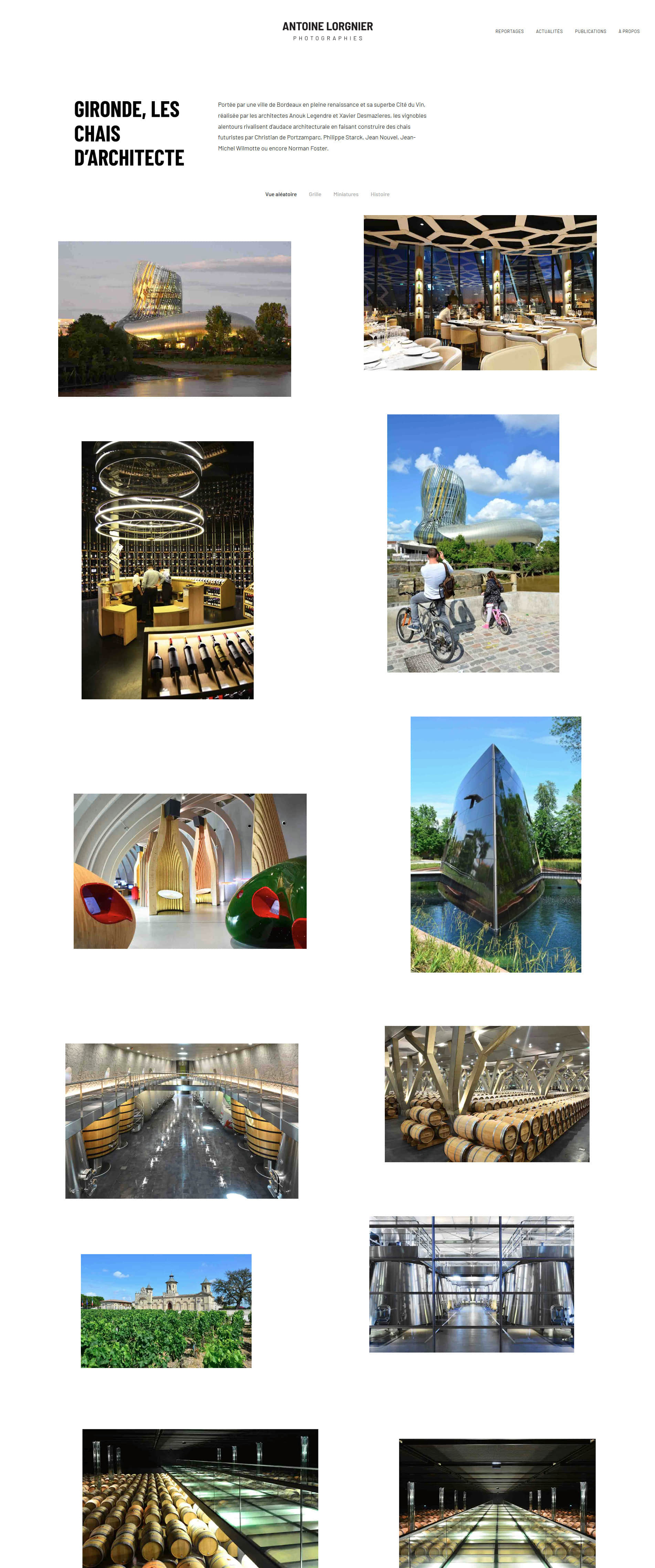 À la fois photographe et rédacteur, Antoine Lorgnier souhaitait un site multilingue français/anglais, minimaliste, élégant et fonctionnel afin de montrer les multiples facettes de son travail.