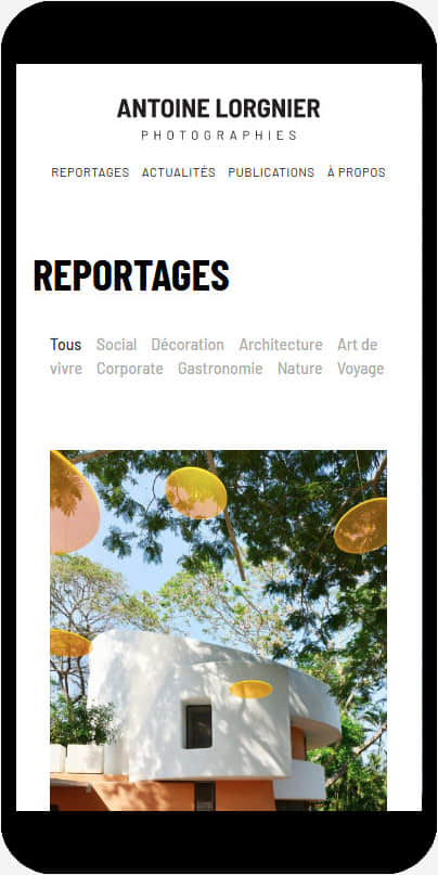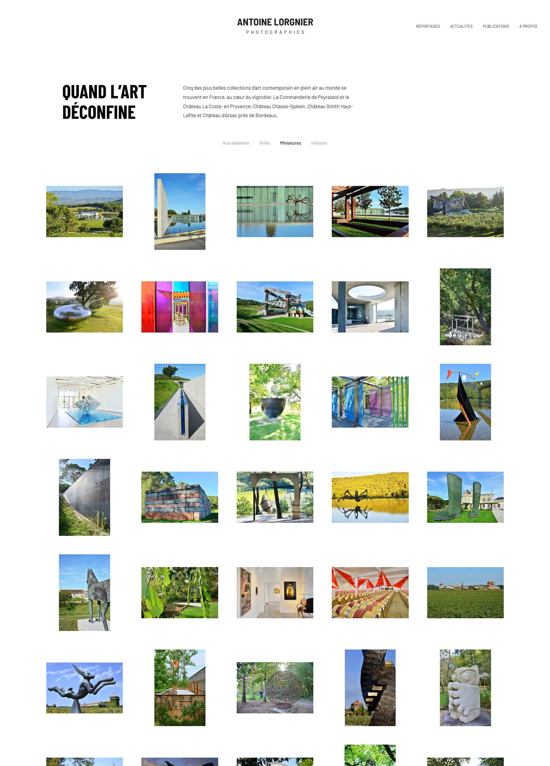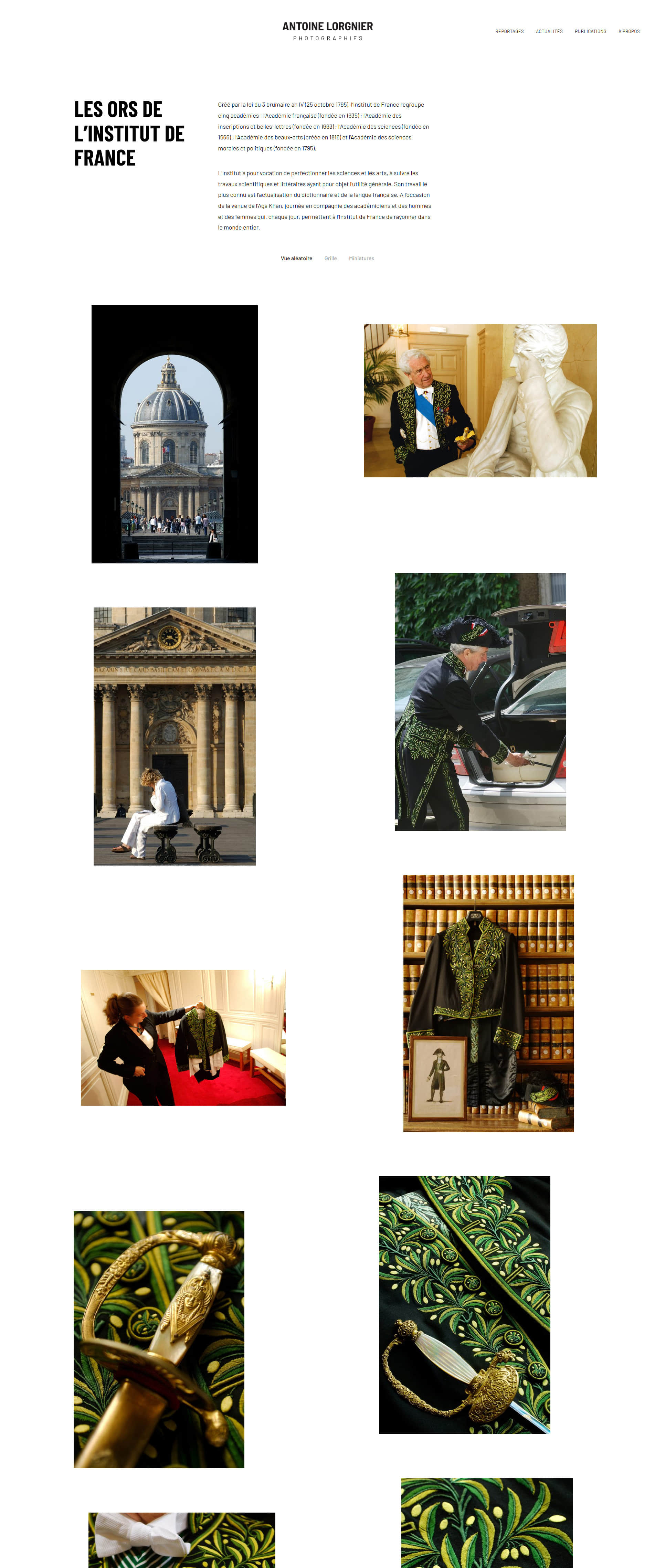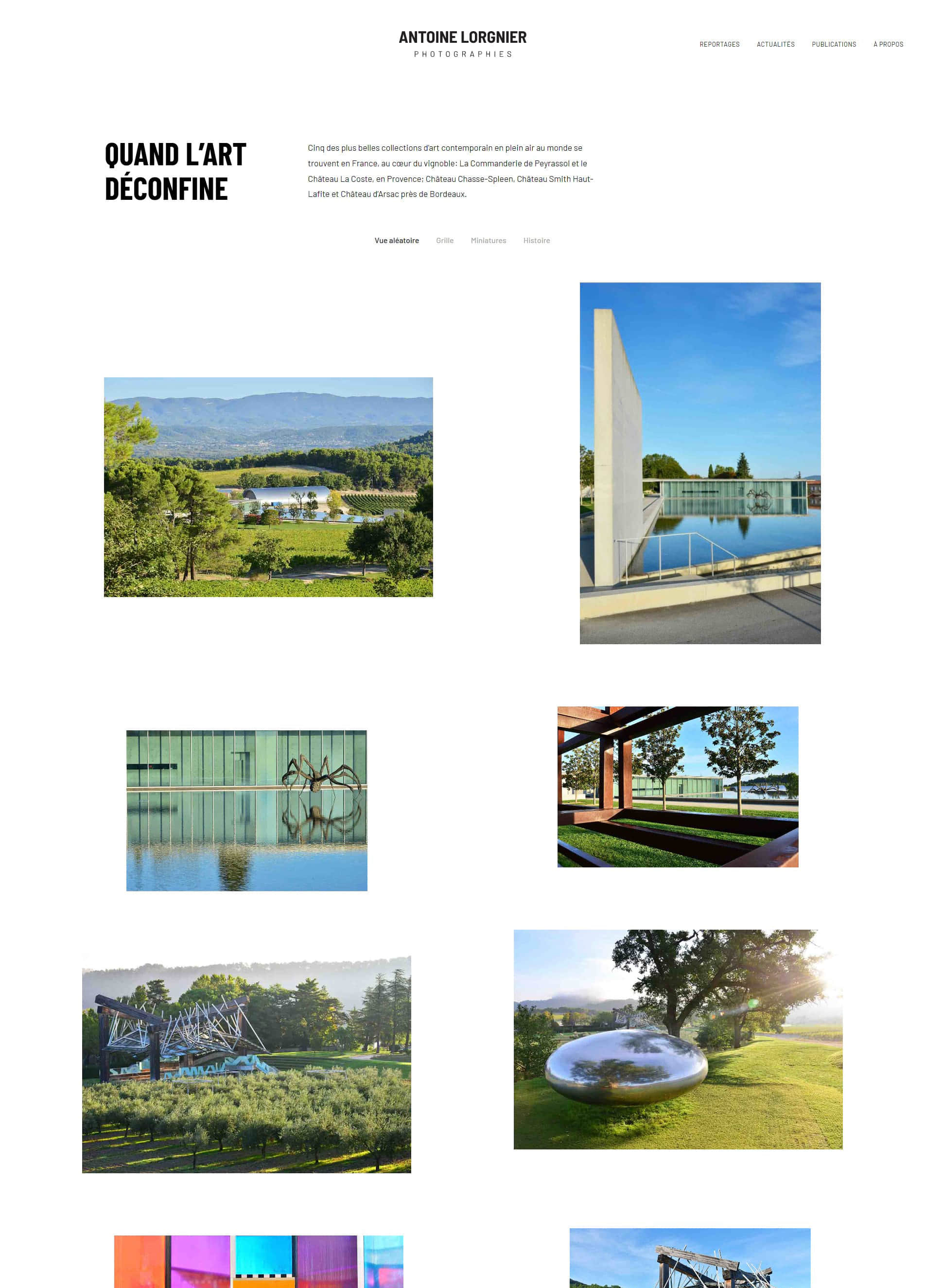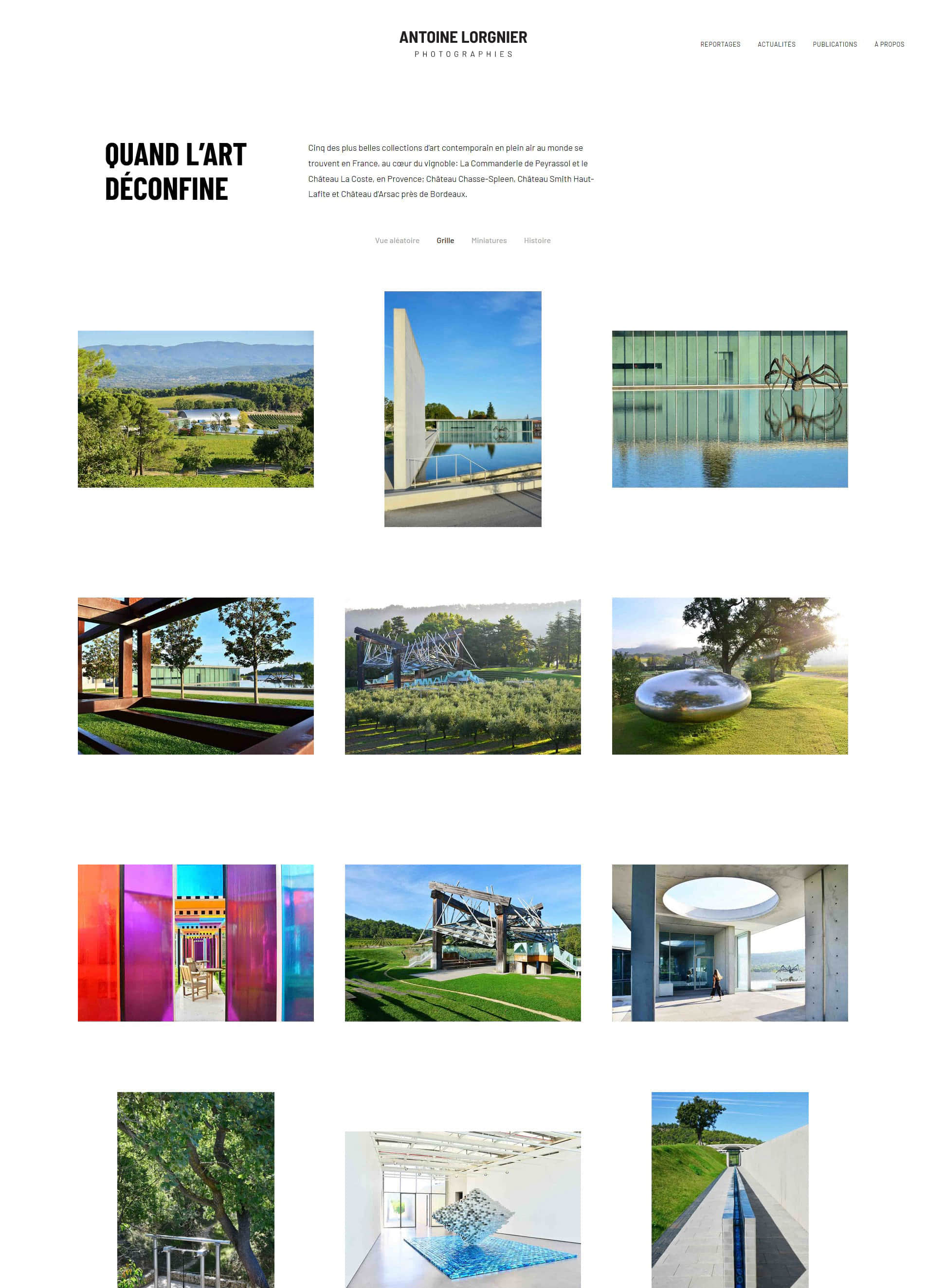 À la fois photographe et rédacteur, Antoine Lorgnier souhaitait un site multilingue français/anglais, minimaliste, élégant et fonctionnel afin de montrer les multiples facettes de son travail.