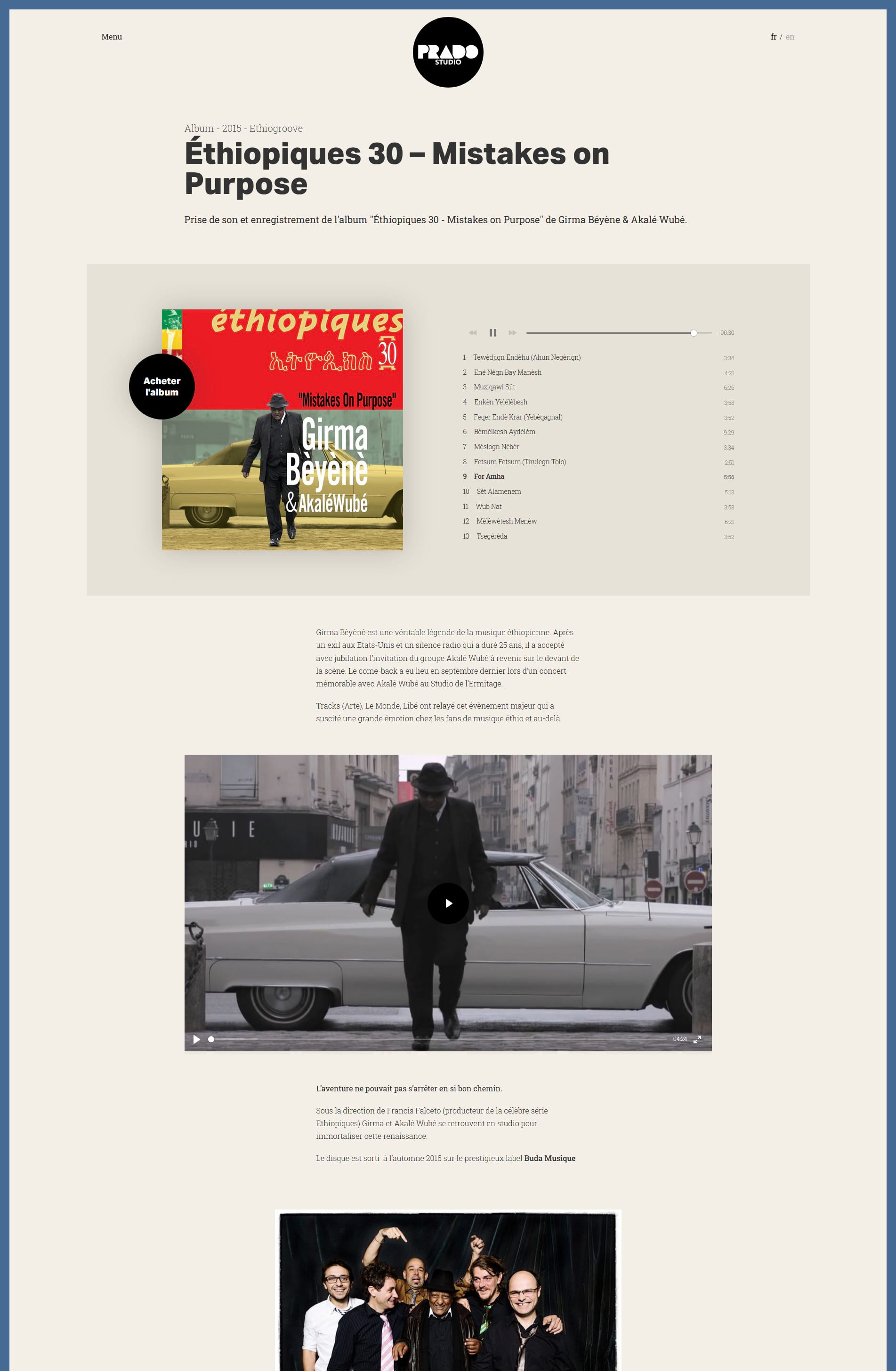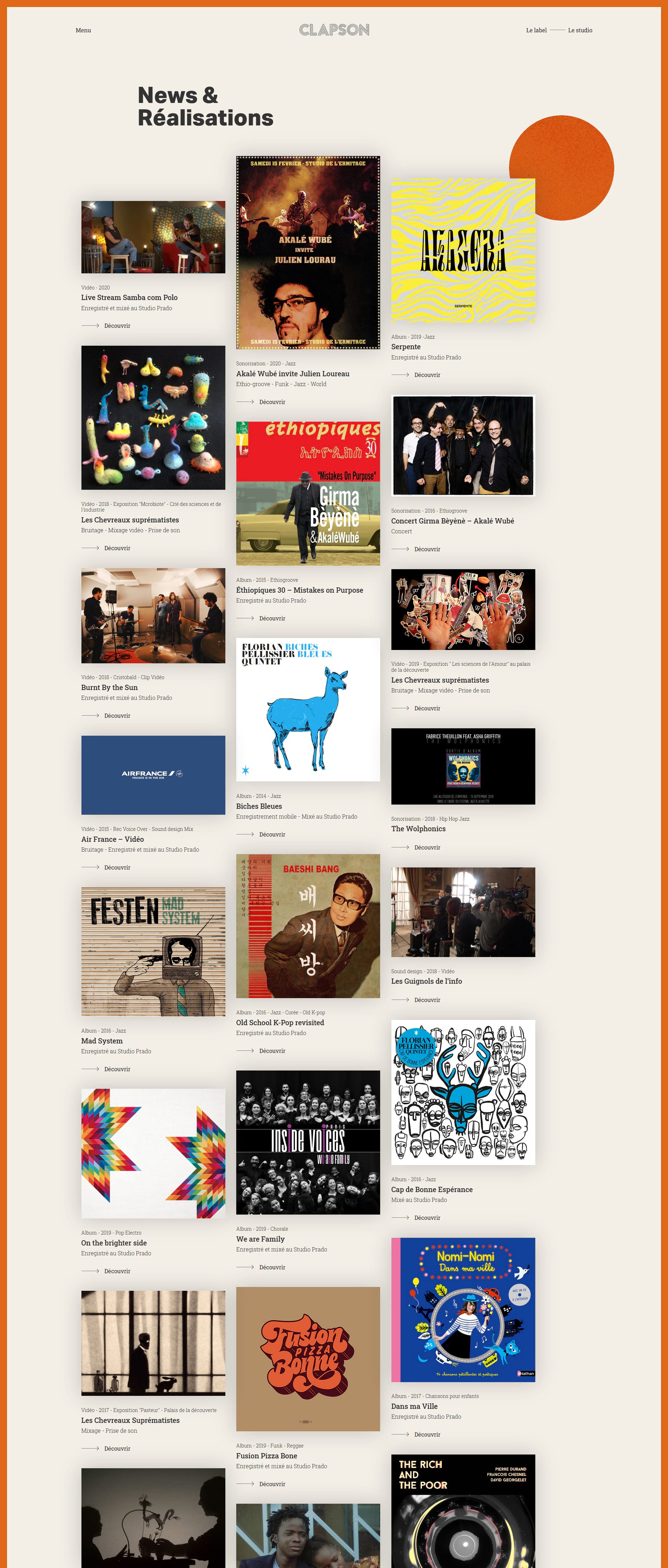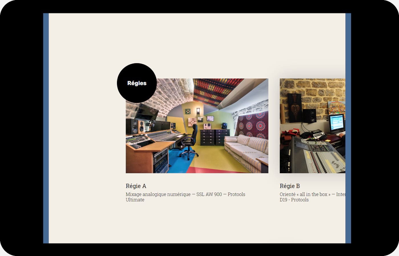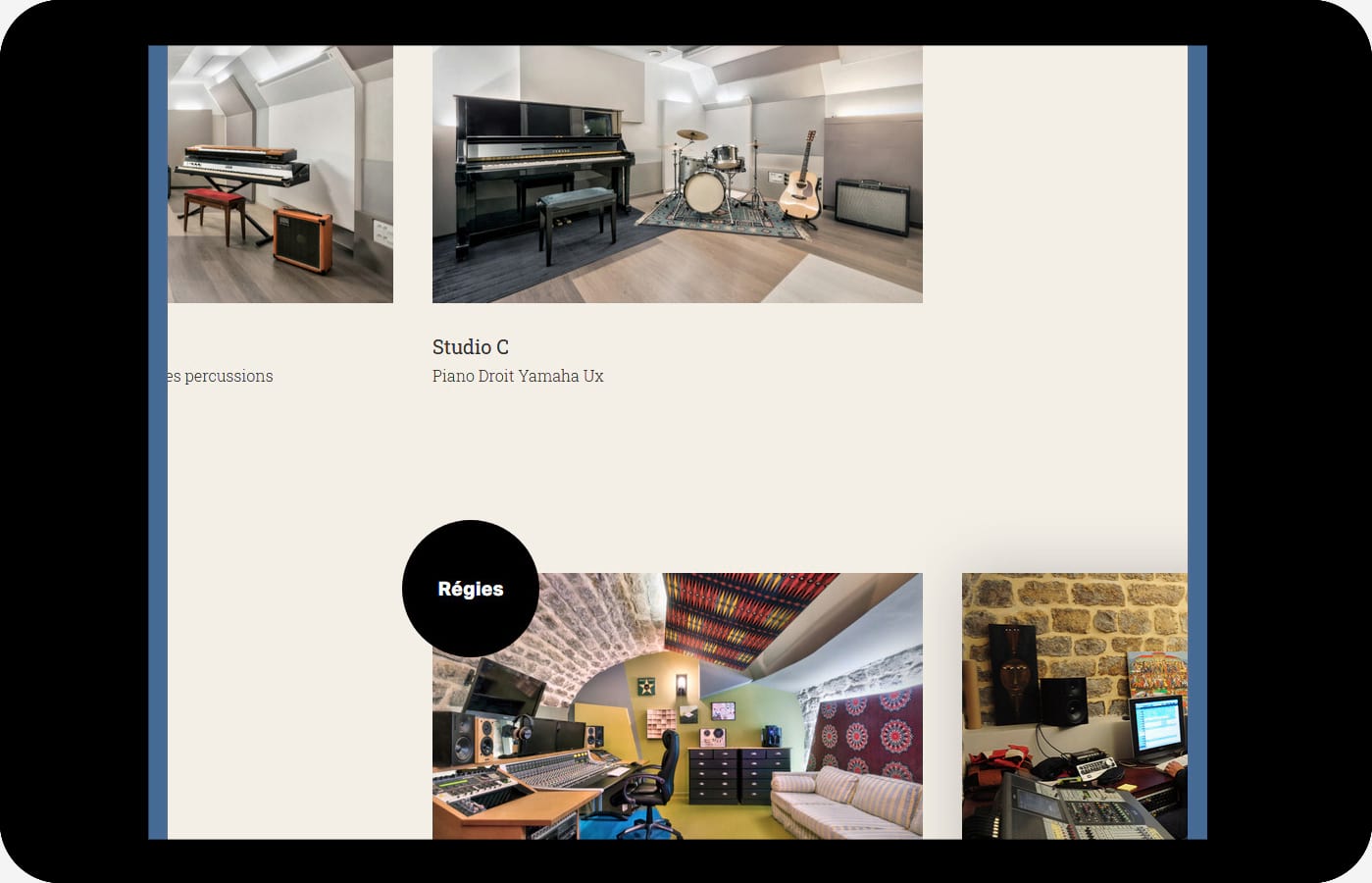 J’ai pensé et conçu l’administration des sites sur-mesure pour gérer la grande variété de réalisations des deux entités : mise en place d’un player musical pour les tracklists albums et les playlists personnalisées de concert, customisation du lecteur vidéo, mise en avant des productions du label, présentation exhaustive des équipements et de la singularité du studio grâce notamment aux photos du lieu, contenu flexible pour la mise en page, multilingue français/anglais.