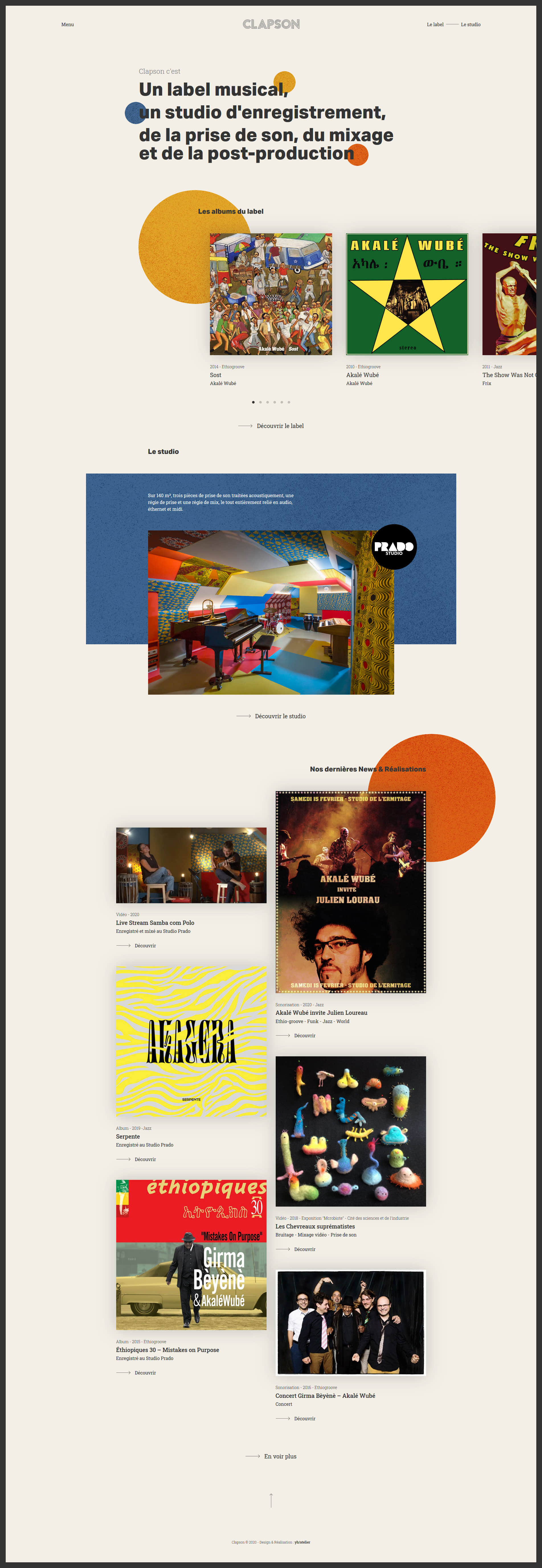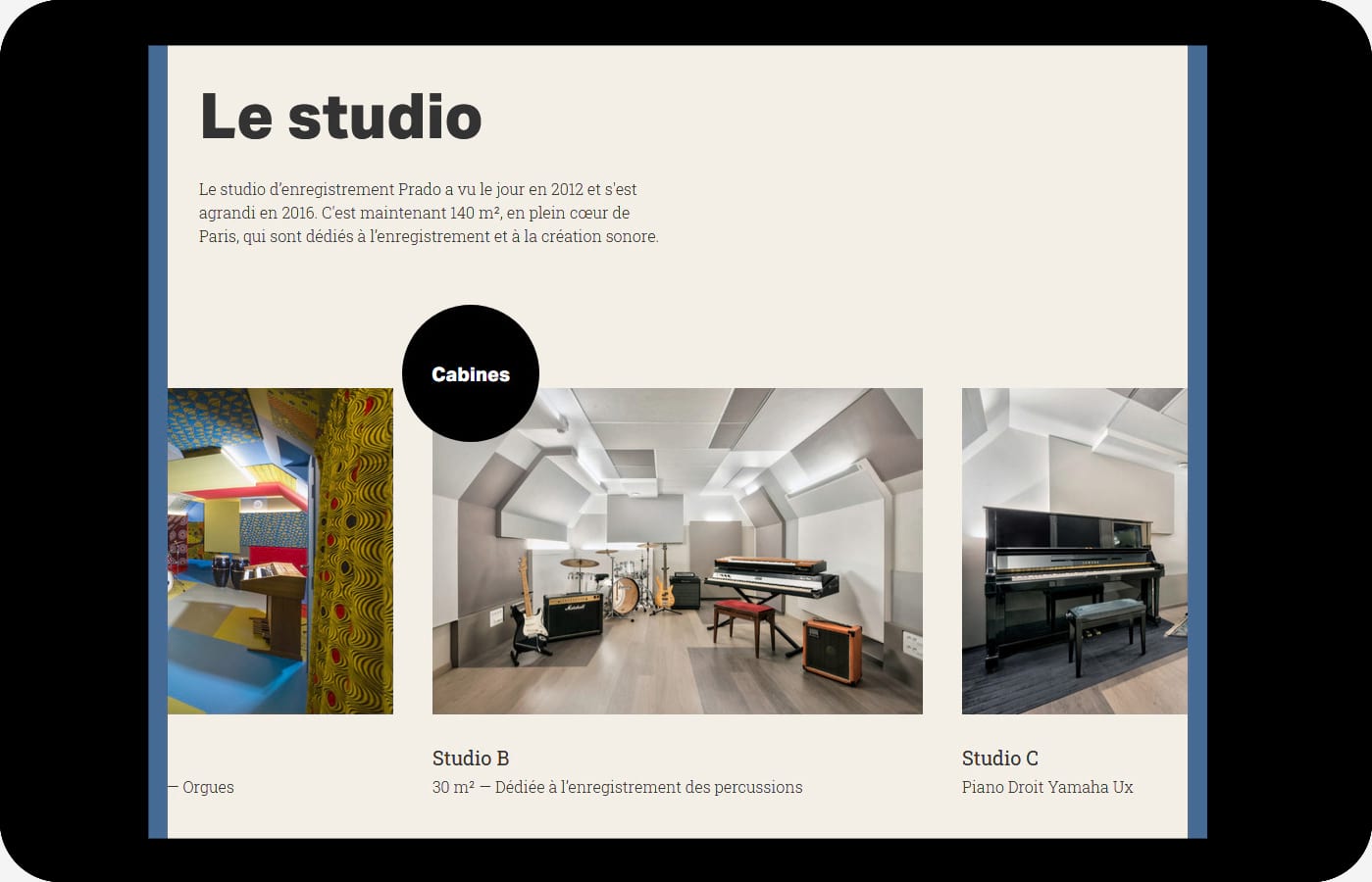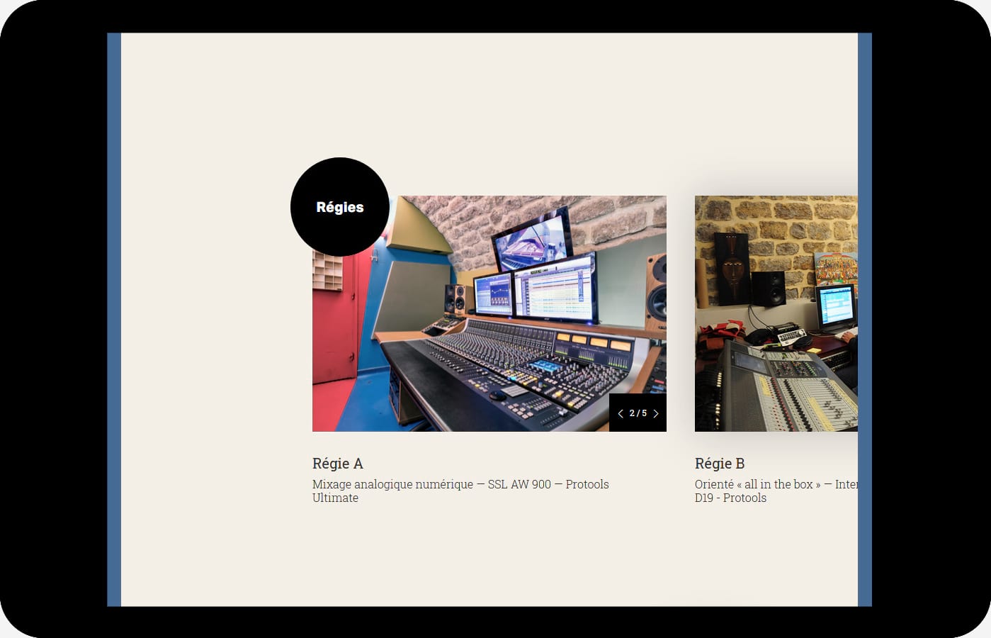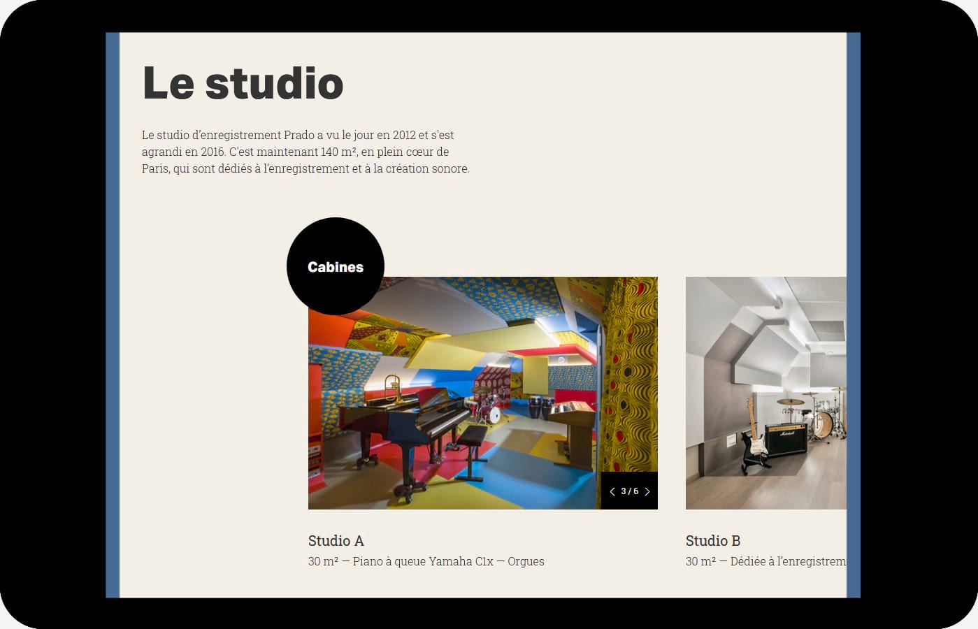 J’ai pensé et conçu l’administration des sites sur-mesure pour gérer la grande variété de réalisations des deux entités : mise en place d’un player musical pour les tracklists albums et les playlists personnalisées de concert, customisation du lecteur vidéo, mise en avant des productions du label, présentation exhaustive des équipements et de la singularité du studio grâce notamment aux photos du lieu, contenu flexible pour la mise en page, multilingue français/anglais.