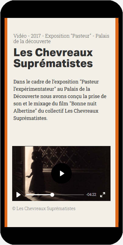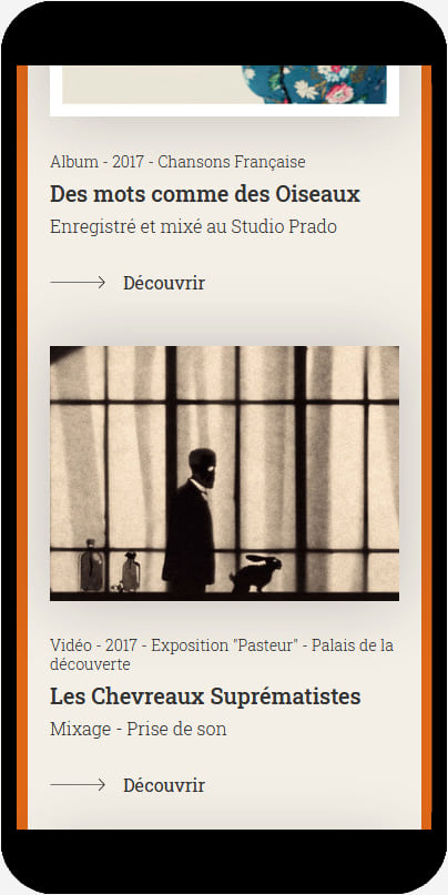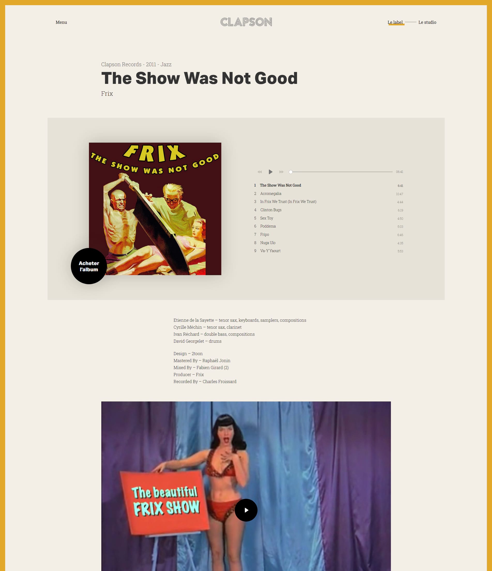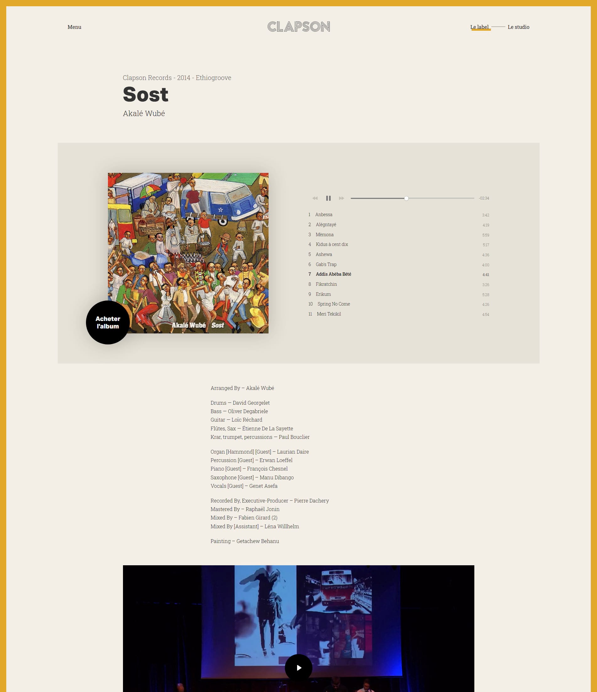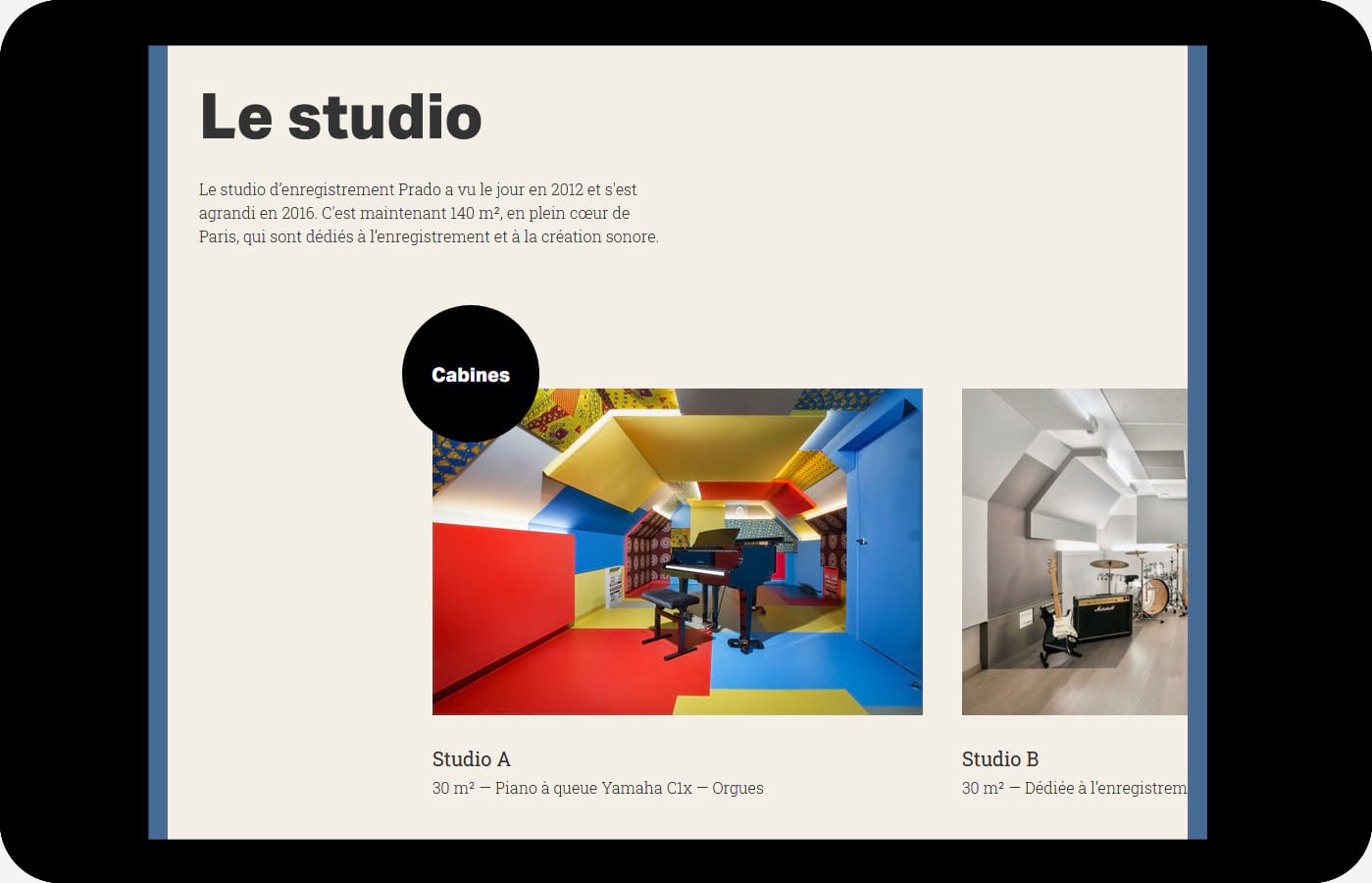 J’ai pensé et conçu l’administration des sites sur-mesure pour gérer la grande variété de réalisations des deux entités : mise en place d’un player musical pour les tracklists albums et les playlists personnalisées de concert, customisation du lecteur vidéo, mise en avant des productions du label, présentation exhaustive des équipements et de la singularité du studio grâce notamment aux photos du lieu, contenu flexible pour la mise en page, multilingue français/anglais.