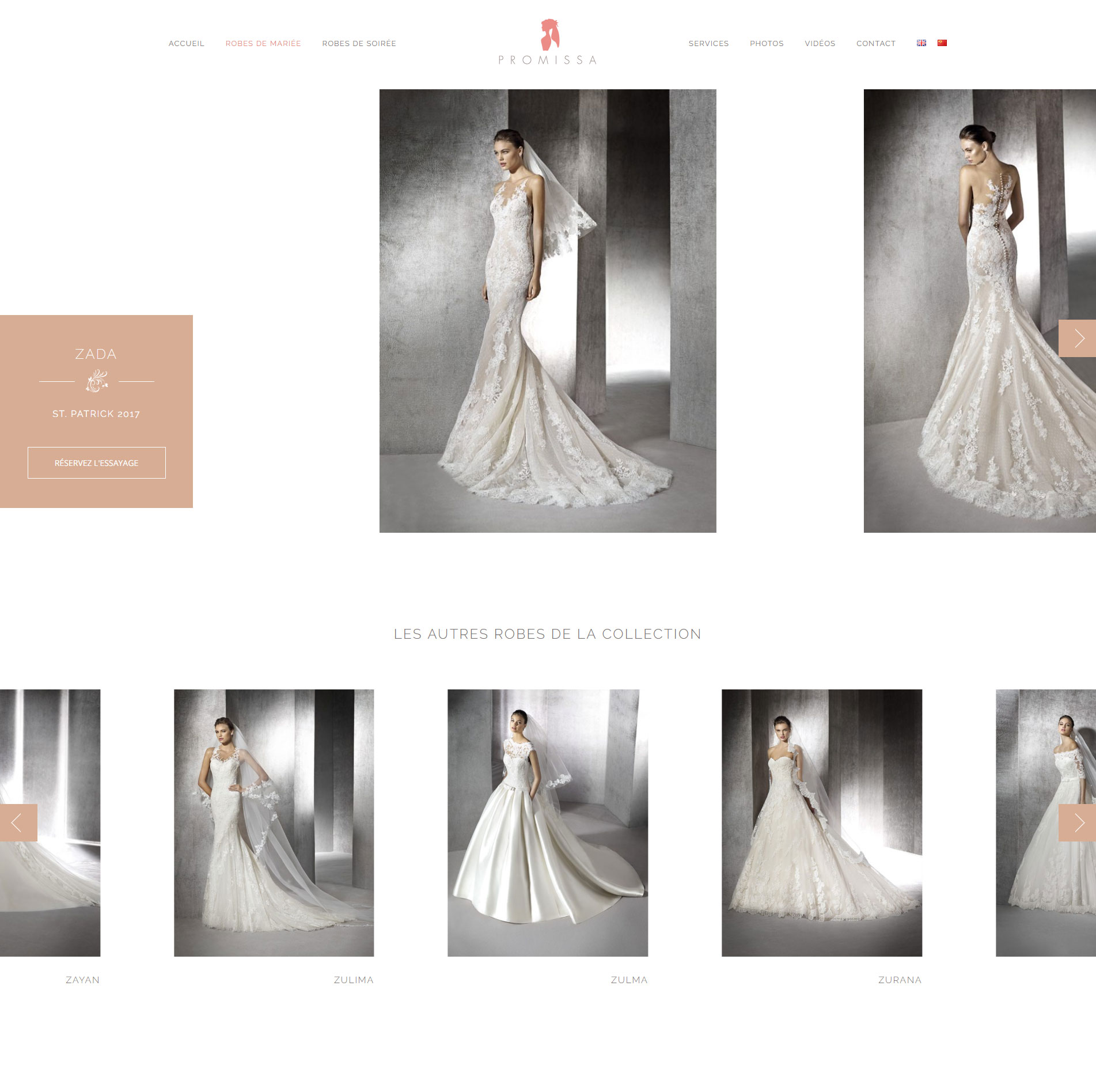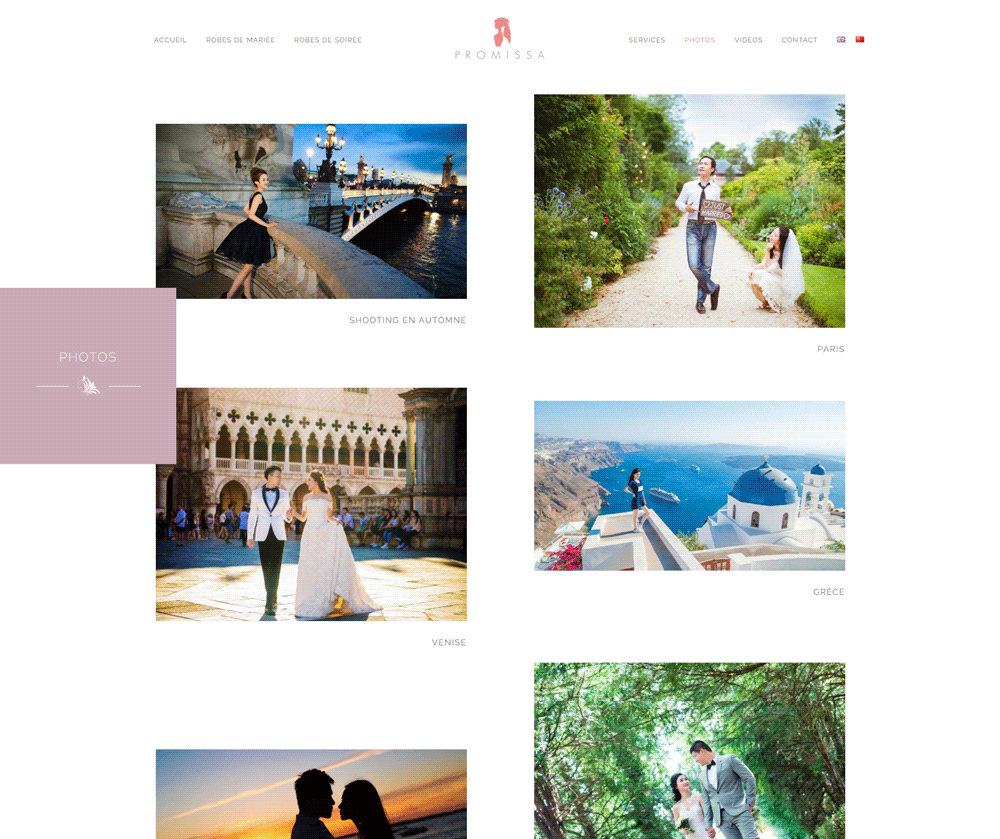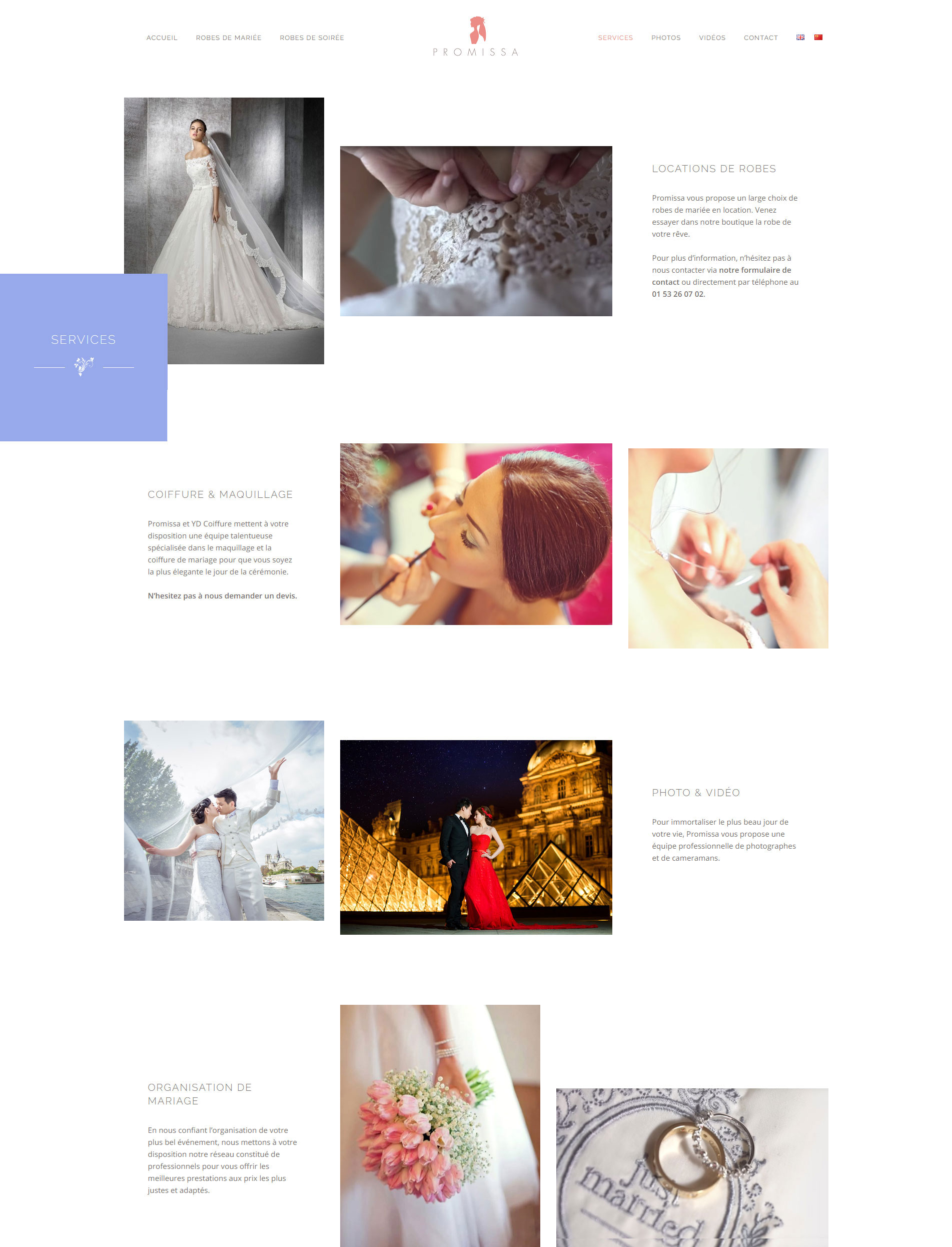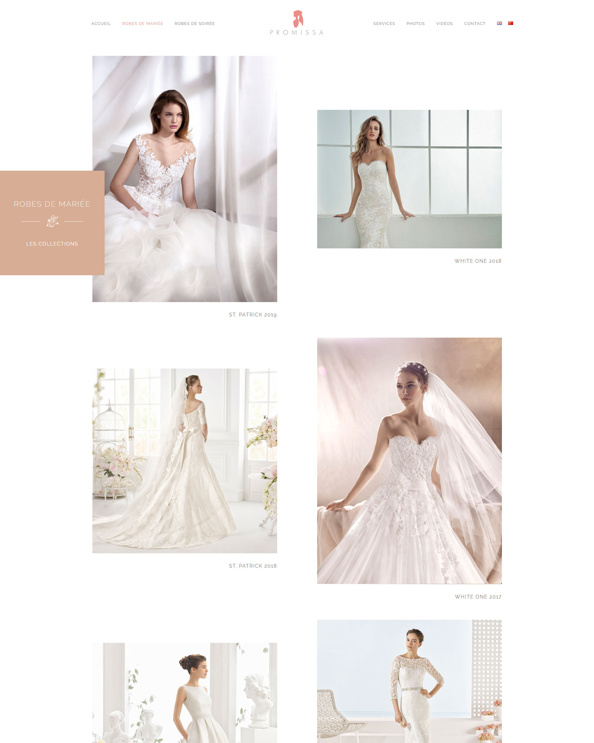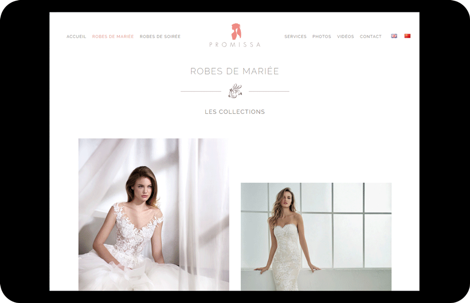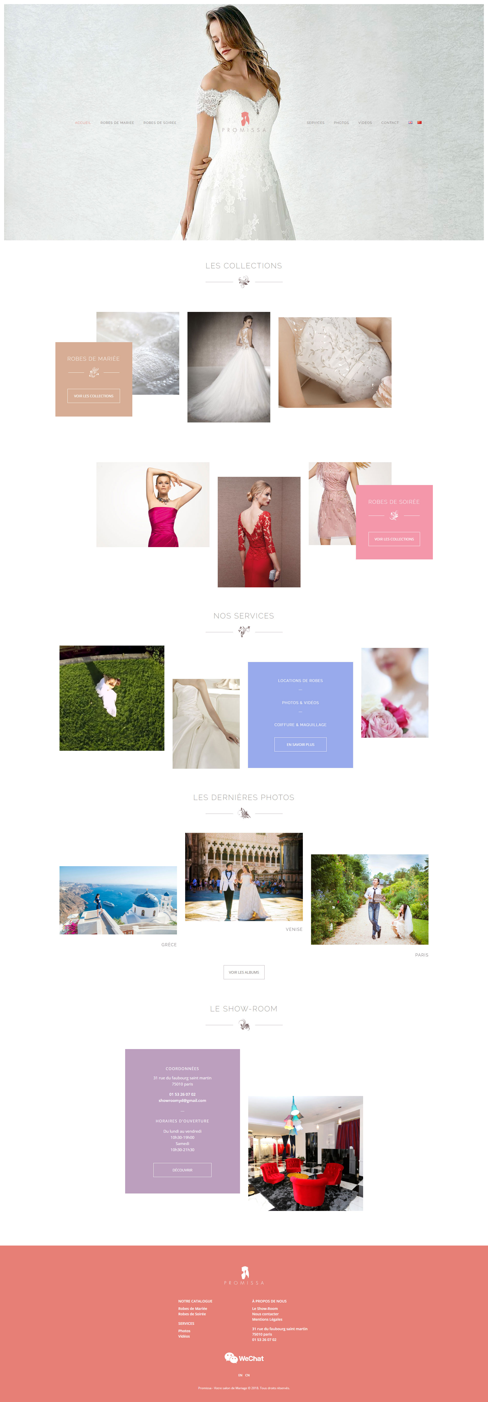 J’ai repensé l’ergonomie pour répondre à leurs besoins : pages statiques évolutives, catégorisation des robes et accessoires par type et collections ; rubriques photos et vidéos avec lecteur customisé ; système de réservation pour essayage les robes ; gestion multilingue français/anglais/chinois.