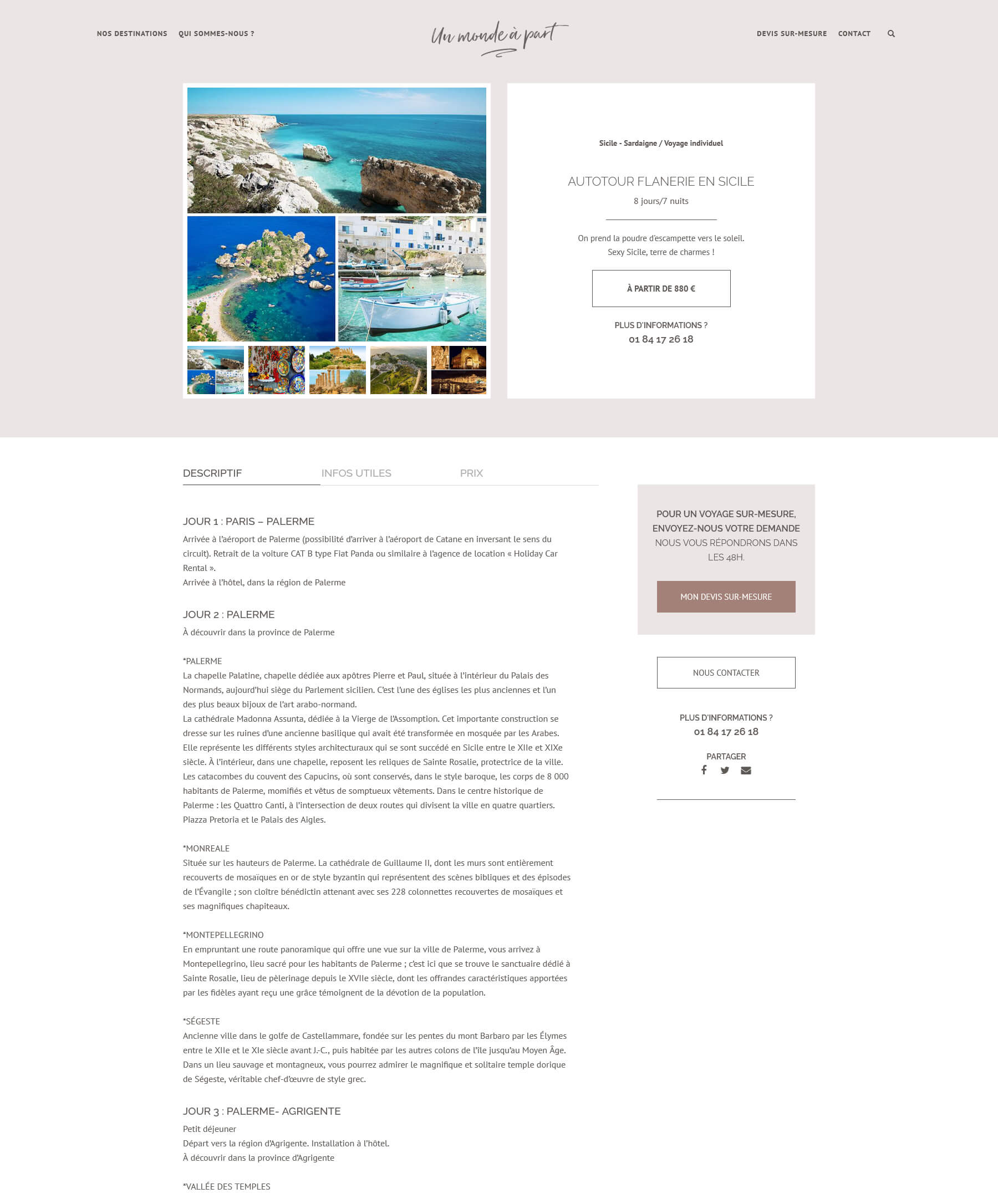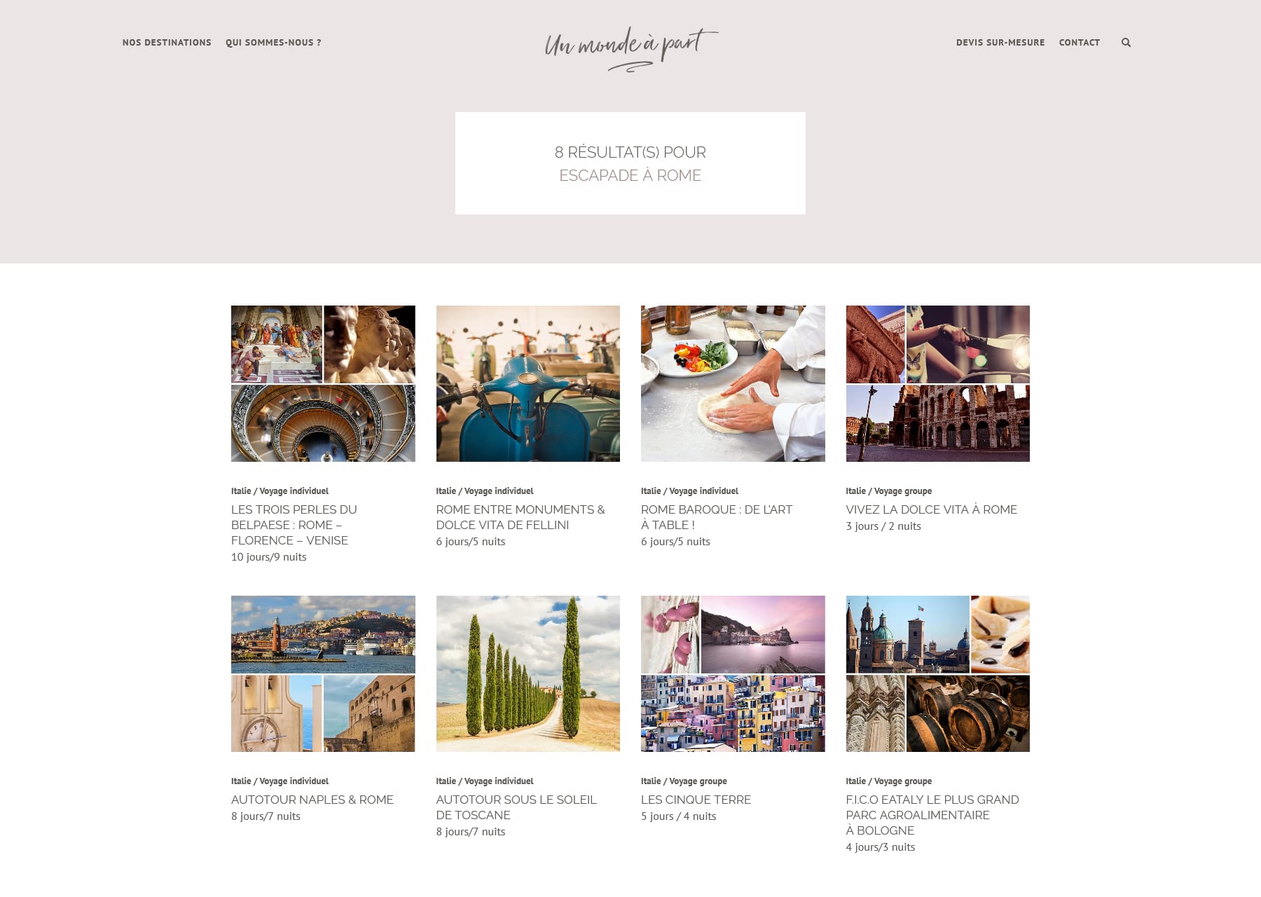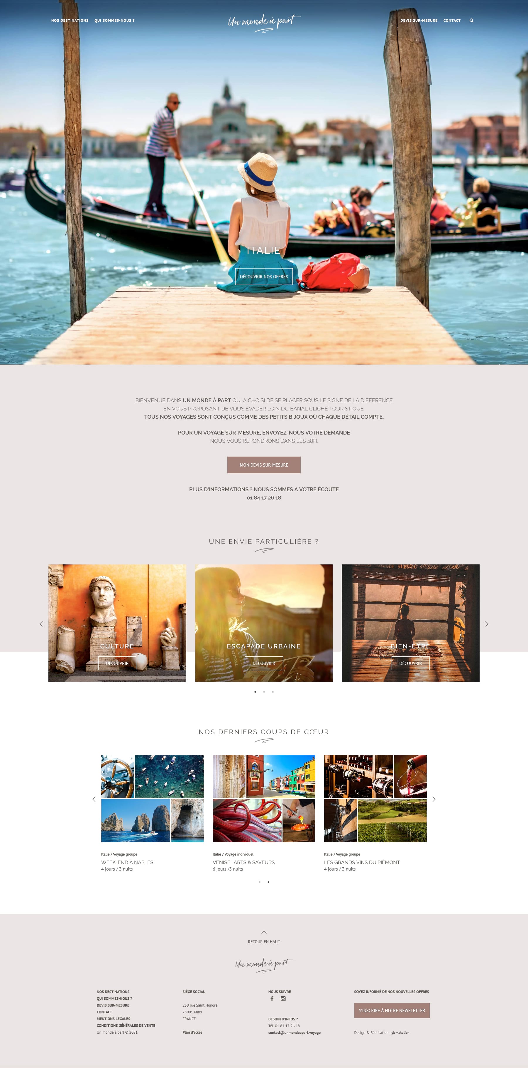 Un monde à part, agence spécialiste du voyage sur mesure notamment en Italie, m’a sollicité pour concevoir et réaliser leur site internet.
