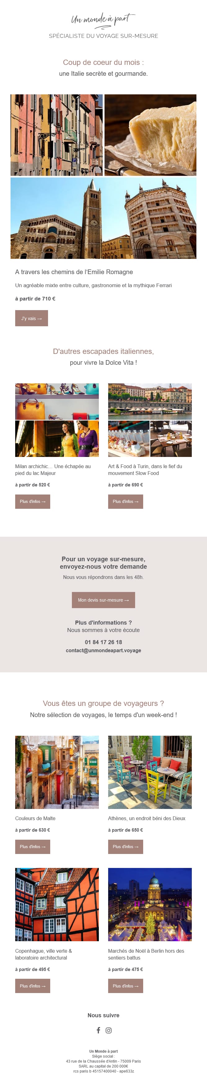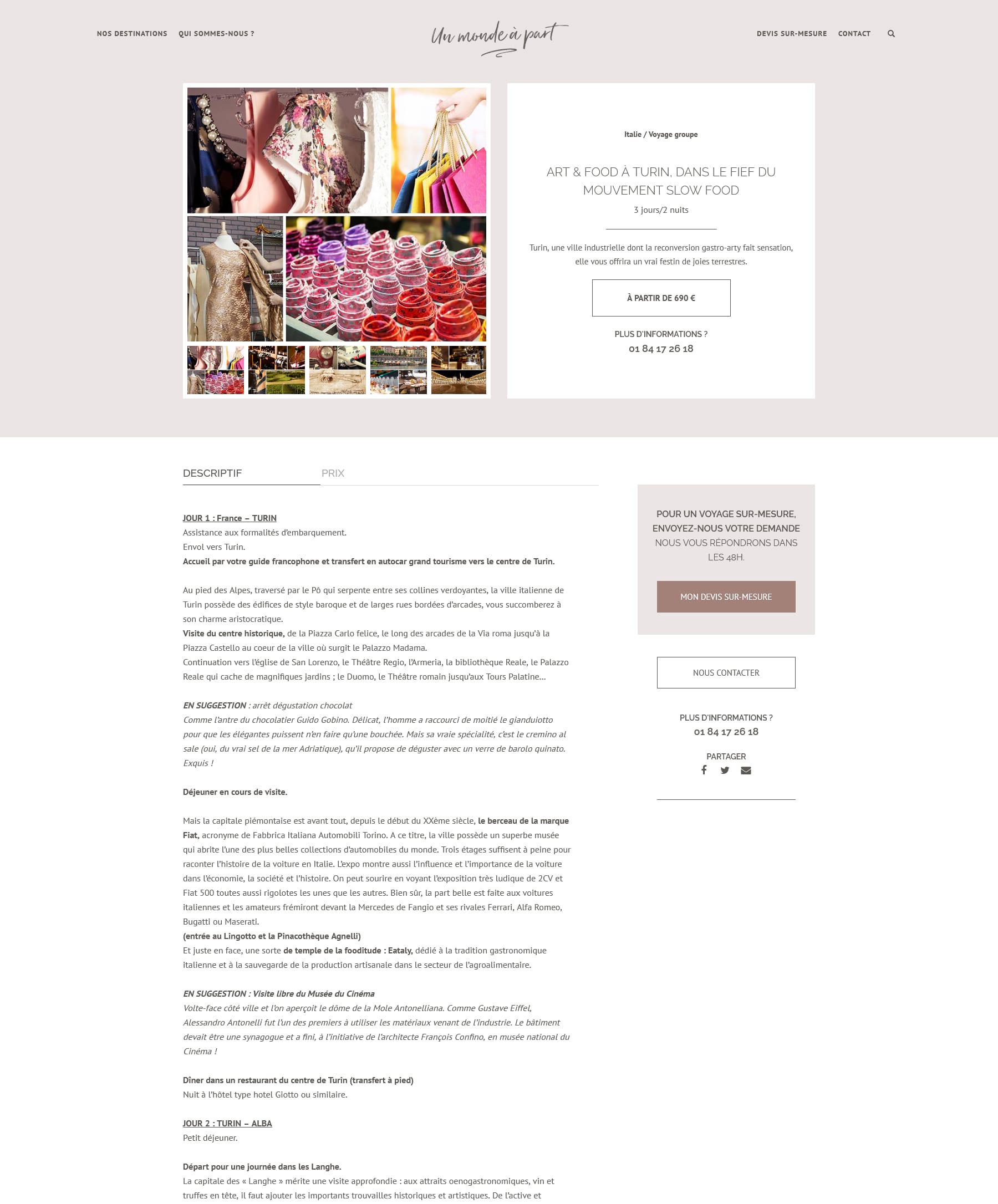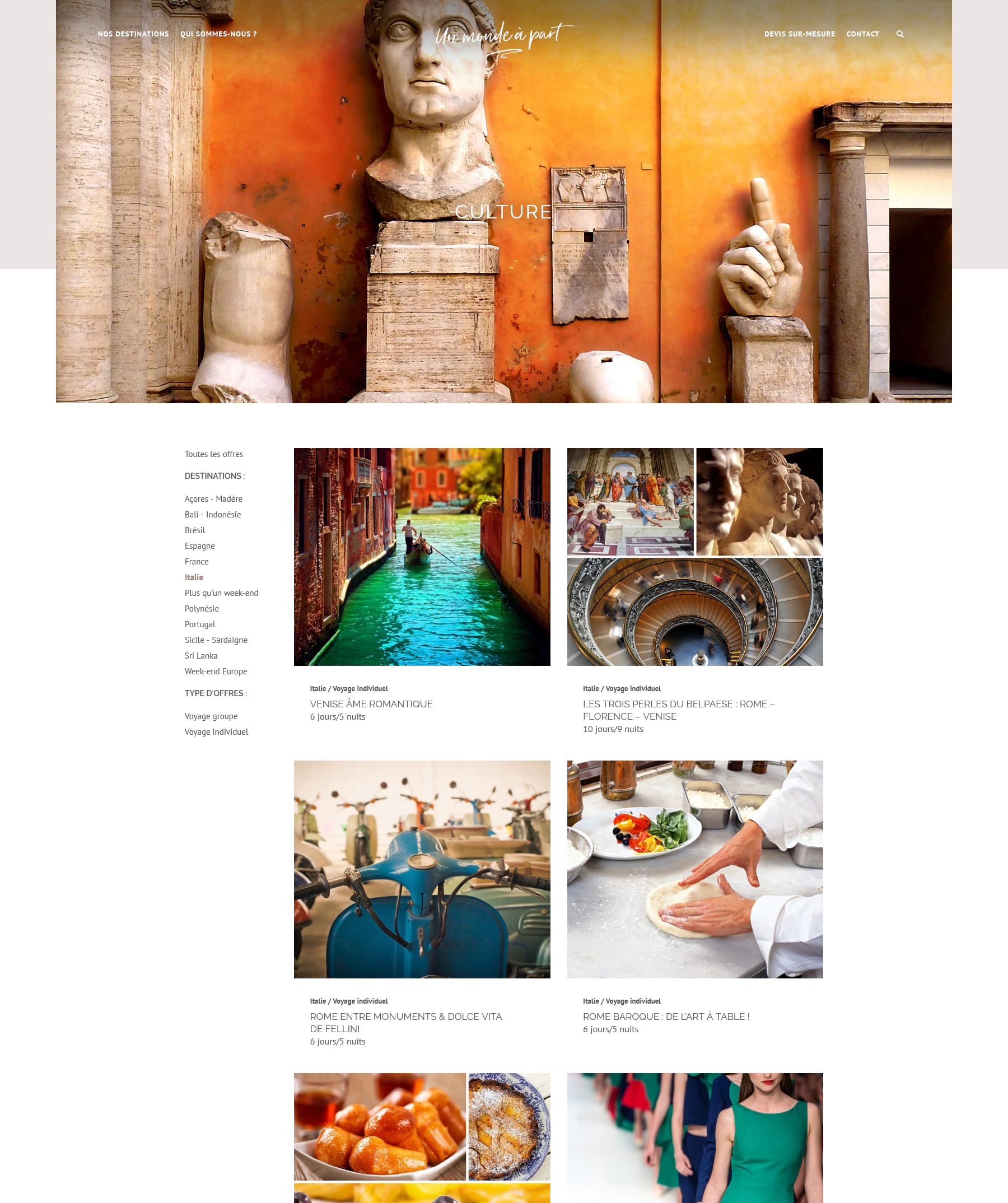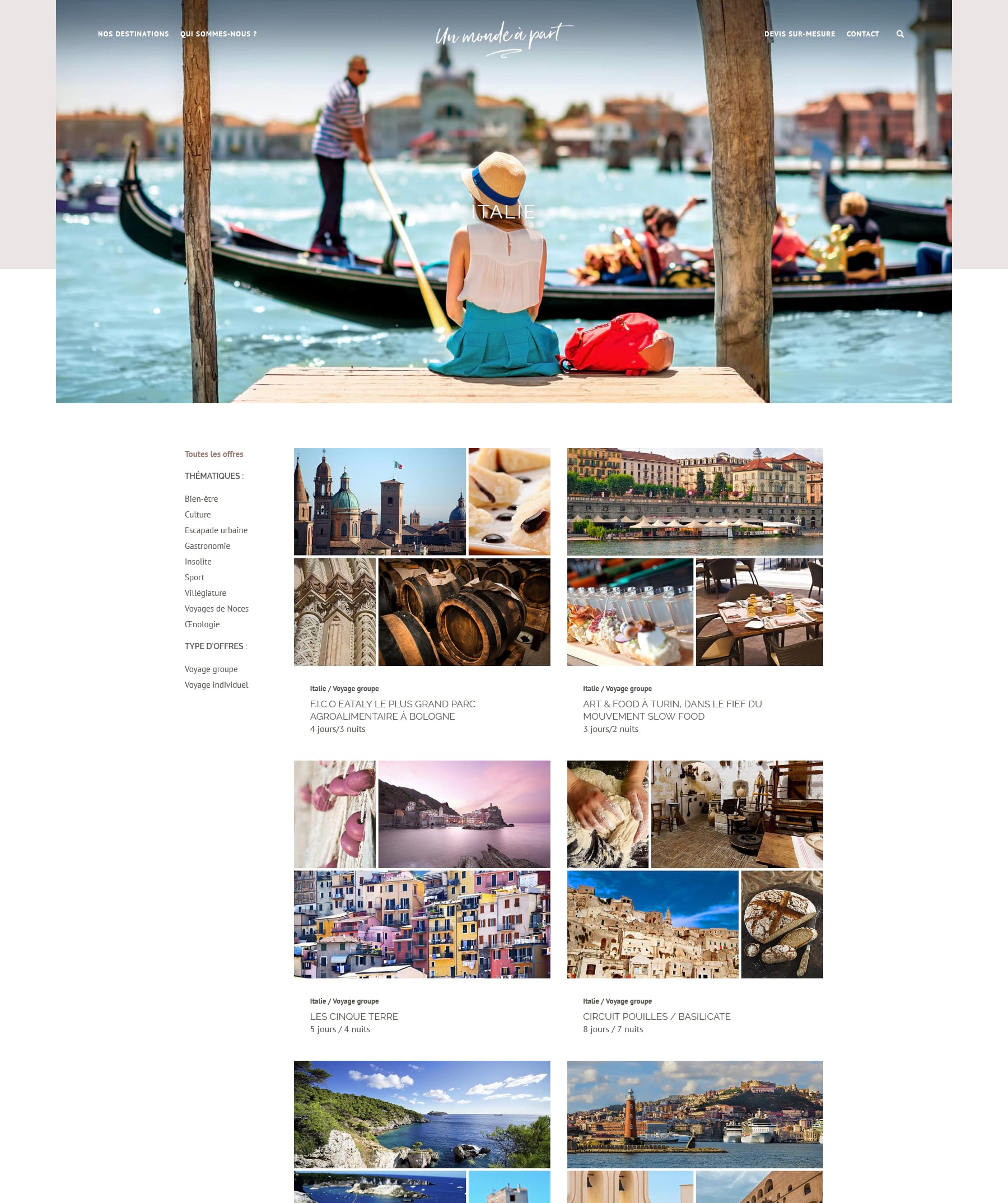 Un monde à part, agence spécialiste du voyage sur mesure notamment en Italie, m’a sollicité pour concevoir et réaliser leur site internet.